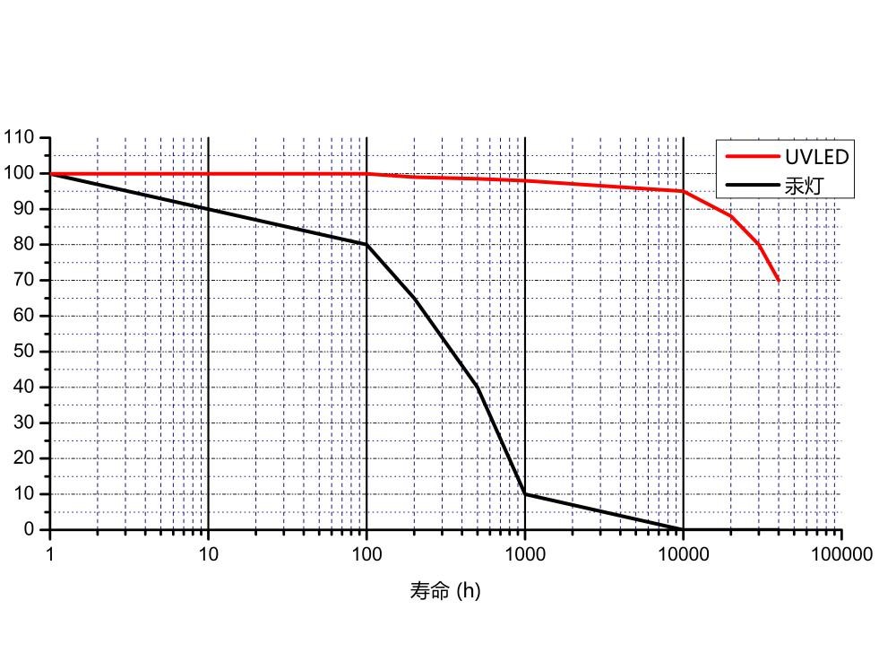 紫外LED器件采用先進(jìn)的紫外輻射源,具有極高的能源效率(約30%),極高的有效波長(zhǎng)選擇性(半功率波長(zhǎng)帶寬5nm),極高的使用壽命(30000小時(shí)),紅外發(fā)熱低,不產(chǎn)生臭氧,更適于交聯(lián)聚烯烴等材料的交聯(lián)固化。